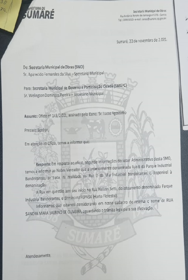 Assunto: Dispõe sobre a denominação da Rua “2” da Vila Industrial Bandeirantes I.