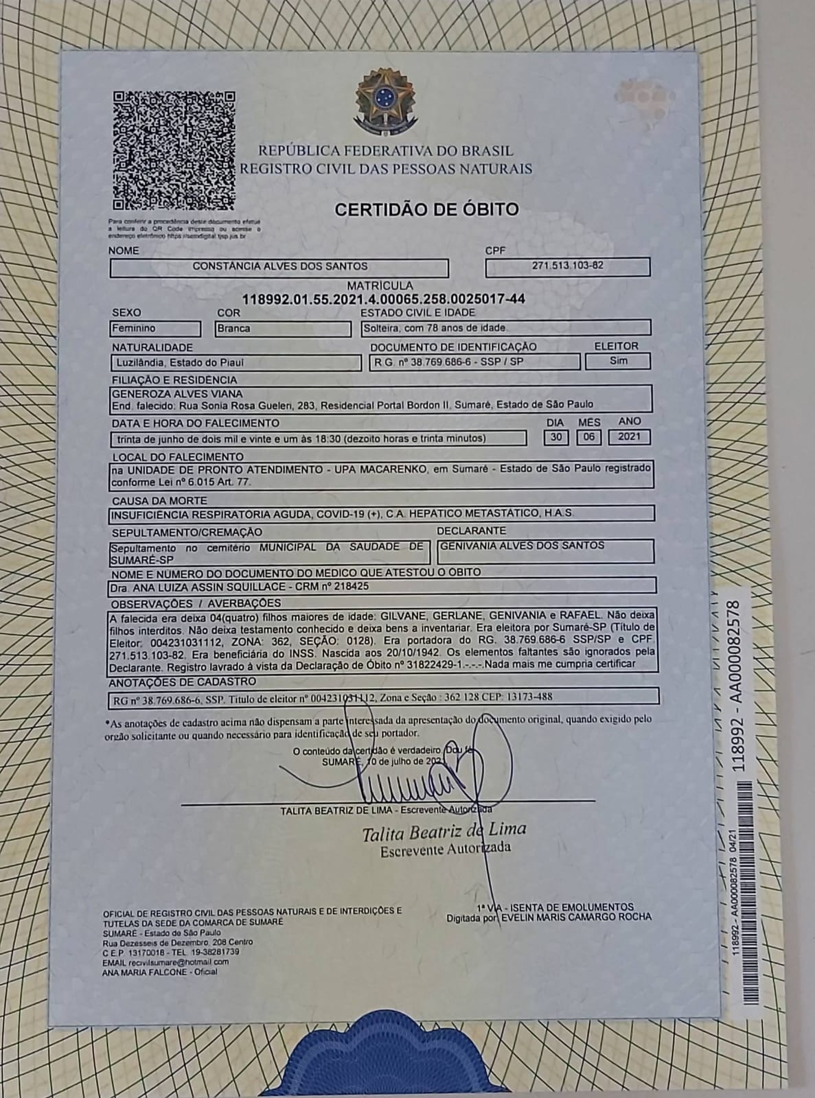 Assunto: Denomina o Sistema de Lazer, localizado no bairro Jardim Conceição II, como Praça Constância Alves dos Santos.